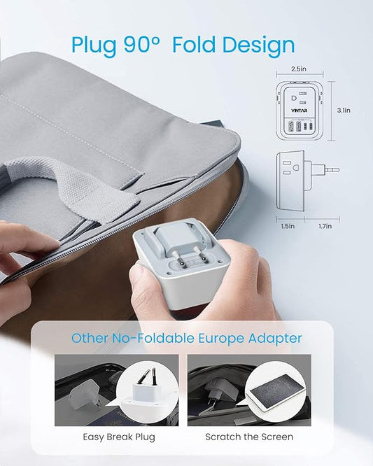 European Travel Plug Adapter, VINTAR Foldable International Travel Adapter with 4 Outlets 4 USB Ports(2 USB C), 8 in 1 Type C Travel Essentials Charger for US to Most of Europe EU Italy Spain France
