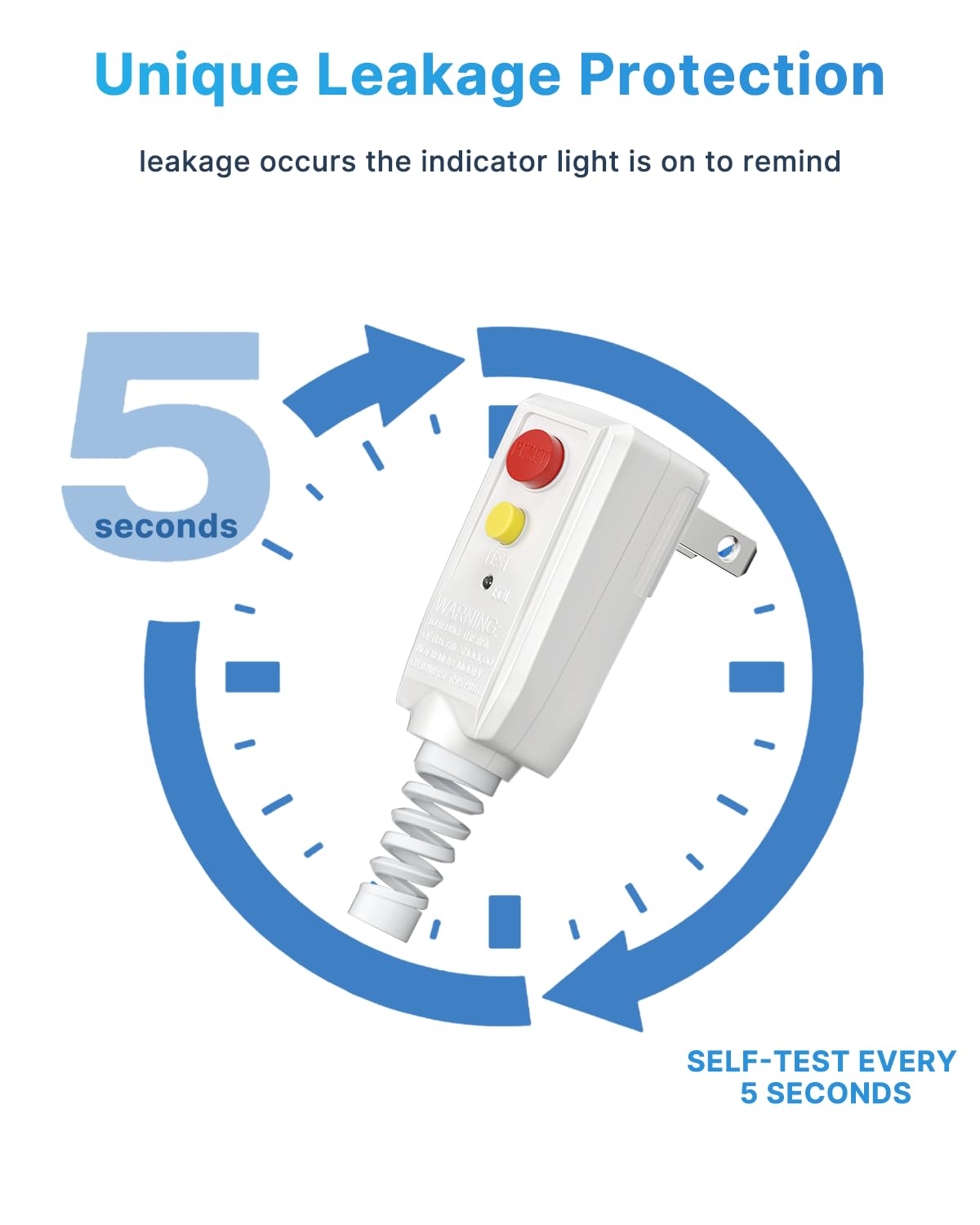 - GFCI Plug & Built-in Circuit Breaker: 2 prong GFCI adapter plug has low power consumption and long service life. Features 6kv surge protection and lightning protection. 5-second automatic detection function ensures that in the event of a leakage or attack during a thunderstorm, it will automatically disconnect the power and illuminate the indicator light, to protect you and your family