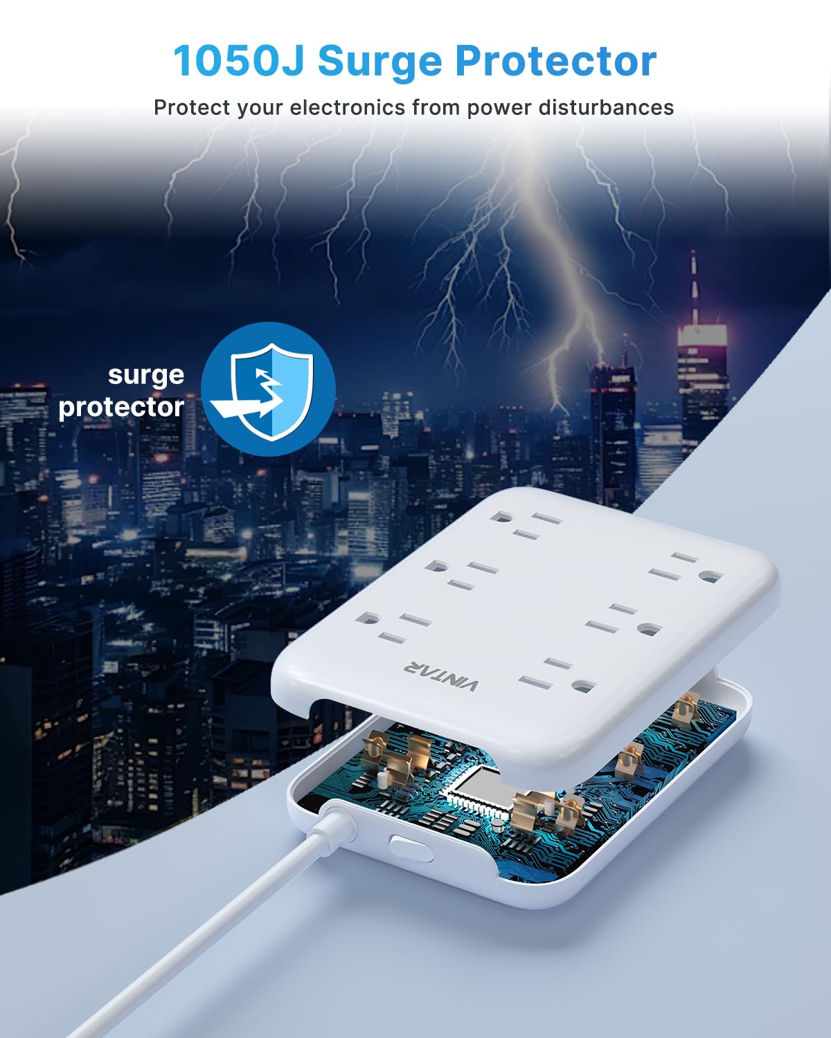 - Superior Safety: This surge protector power strip is FCC listed, equipped with 1050 joules of surge protection and a 13A circuit breaker, it also features a fire-resistant PC casing, protecting your home/office equipment such as TV, computer, printers, copiers, and routers from voltage fluctuations, surges, and spikes