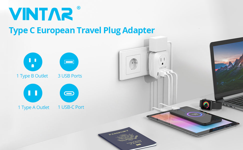 ![[3-Pack] European Travel Plug Adapter, VINTAR International Power Plug Adapter with 2 Outlets, 3 USB and 1 USB-C, 6 in 1 Travel Essentials for US to Most of Europe EU Italy France Spain Greece, Type C](http://vintar.tech/cdn/shop/files/1_c139535e-5169-4d3c-8364-b117e3f3d764.jpg?v=1682477476&width=1445)