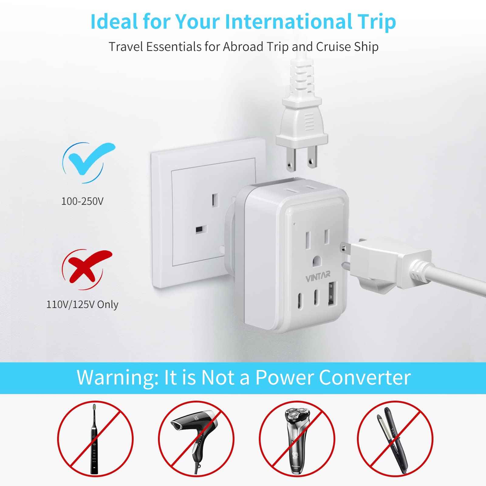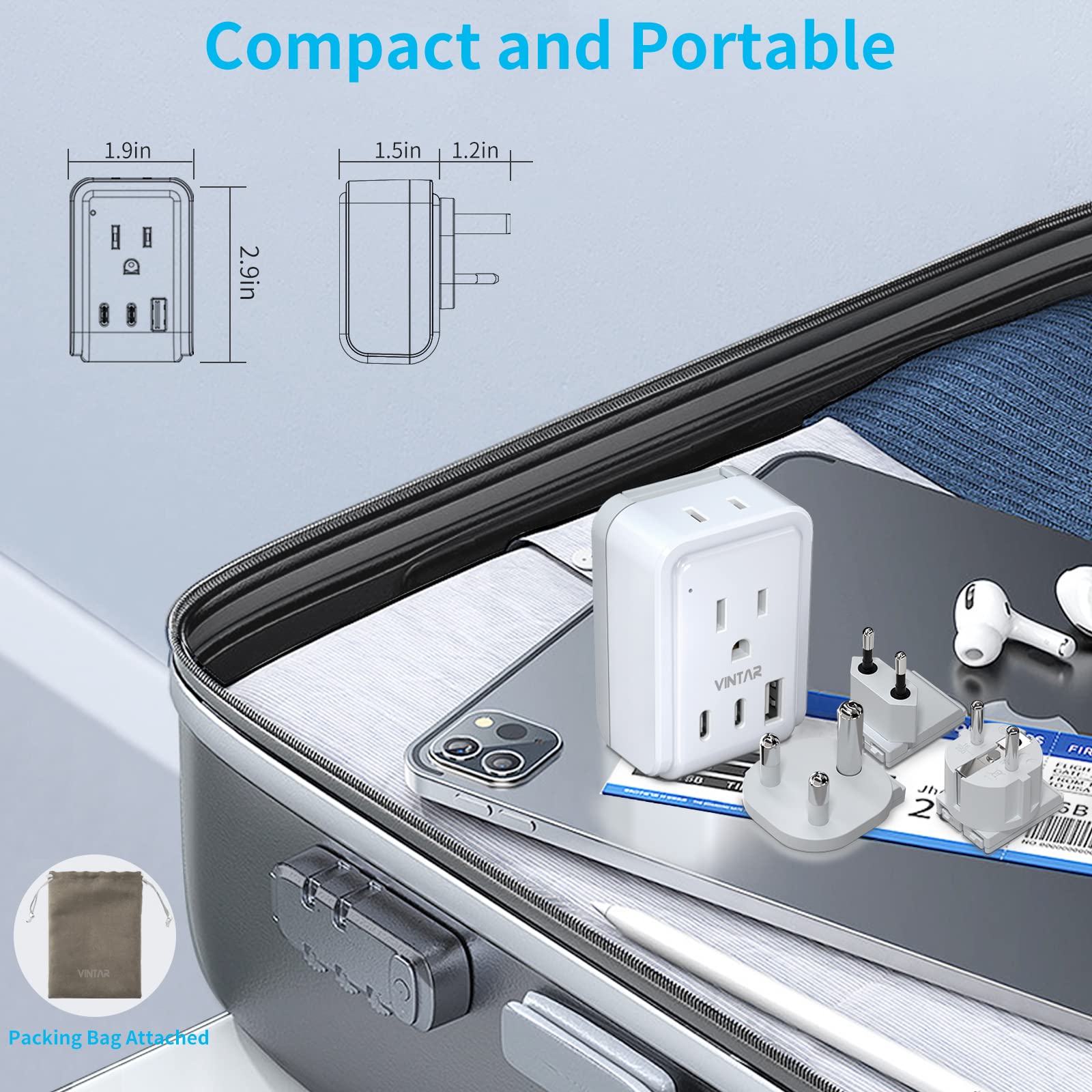 South Africa Power Adapter Kit, VINTAR International Plug Adapter with 3 USB Ports (2 USB C, 3.4A) & 2 American Outlets, Type M,G,E/F Swap&Adapt Attachments, Adapter for US to Africa Botswana Morocco
