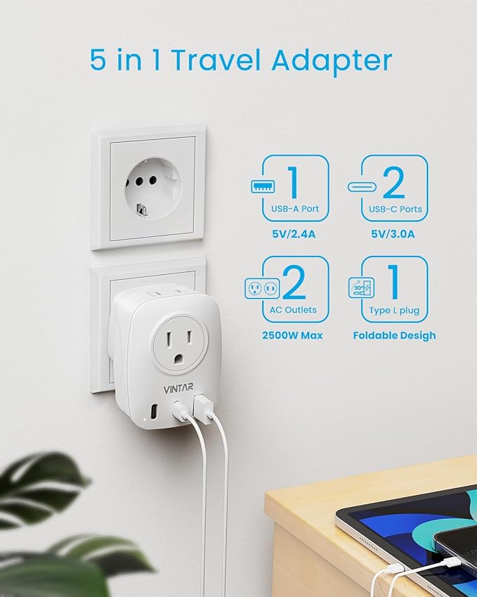 ![[1-Pack] Italy Travel Plug Adapter, VINTAR Foldable Italy Power Adapter with 2 AC Outlets 3 USB Ports(2 USB C), 3 Prong Grounded Type L Plug Adapter for US to Italy Rome Uruguay Chile](http://vintar.tech/cdn/shop/files/71iTHnIFv5L._AC_SX679__1.jpg?v=1697768055&width=1445)